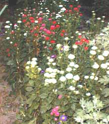 私が散歩しているコースには菊の花に似た華麗な色の花が咲くところを見付けました。