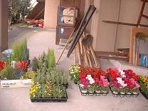 もみじ葉ゼラニウム、ミニバラ、コニファー類、パンジー、ビオラ など、