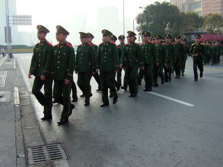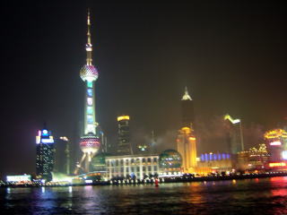 (左)上海を紹介した本には必ず掲載されている外灘から見る夜景。見慣れたはずなのについ撮ってしまう。 (右)東方明珠塔観光に来た少年兵。まだ幼さが残る彼らは海軍所属だとか。