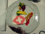 最終日の晩餐はチーズフォンデュ。余りチーズが好みではないので、一緒に出たポテトのほうが口に合った。メニューは一品目がビーフで、これがチーズフォンデュ。次がオリーブオイルのフォンデュ。最後が果物のチヨコレートフォンデュ。まぁ、話しの種としては結構なコースであった。