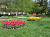 その後寄ったのがモルジュ独立公園のチューリップ祭り。約10万本のチューリップが咲き乱れ、というがこれは植えたもの。観光用の催しかもしれない。しかし、お年寄りの楽団がアコーデオンで演奏するとか、犬の散歩に子供が戯れるとか、のどかな雰囲気がゆったりした時を刻んでいた。