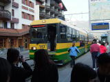 午後からはグリンデルワルトへ。途中自然保護とかで長いトンネルをカートレインで移動する。カートレイン、つまり汽車が車ごと客を積んで走るというものだ。ただここで問題。我々の乗っていた豪華バスは高さ制限のためトレインに載せられないといので、代替車が登場したのだが、これがツアー客には気に入らない。添乗員氏も「これはちとひどい」という代物で、定員15名のところに14名、いや添乗員氏と運転手がいるから定員オーバー。またこの運転手氏が飛ばす飛ばす。山のカーブもなんのその、右に左にとハンドルを切る。後部座席は向かい合いの席で、ここに乗った女性が車酔いを起こす騒ぎ。