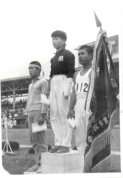 当時の砲丸投の手法は投擲方向を向きながら勢いをつけて放り投げるのが一般的でしたが、私が採ったのはオブライエン方法と言って、投擲方向に背を向けて一気にサークルを縦断し砲丸を突き出す手法でした。腕に添え木をし石膏で固めていなければ、かなり華麗な姿になるはずなのでした。