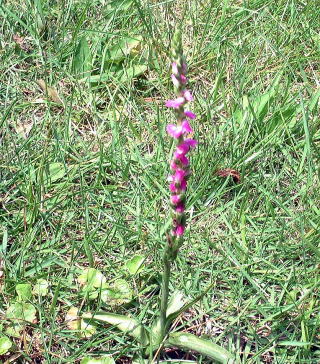 家の周辺をブラブラしていて、アスファルトに塗り固められた道路脇の小さな草地に「ネジリバナ」が咲いているのを見つけた。