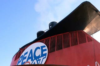 補足のスタッフの説明では守られる船団は6隻で、観光船はピースボートだけでほかは貨物船のようです。