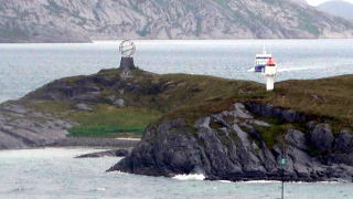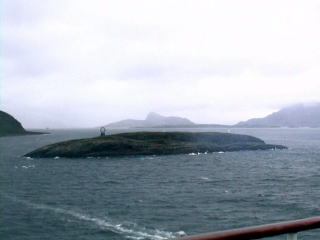 ↑白い点のようなものがミツユビカモメだそうです 船のアナウンスでこの近くに次の写真にある白頭鷲の巣があり二羽いると言ってますが全然見えませんでした