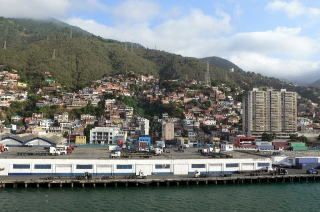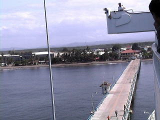 7月16日朝の6時頃には港沖に停泊していたのに、潮の影響でプンタレナスの防波堤のような港に着岸したのは9時でした。