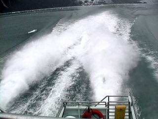 ↑プリンスウイリアム湾を巡るクロンダイク・エクスプレス号 3階だての高速双胴船で最高速度は73.6km