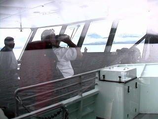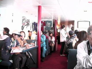 帰船リミットが22時でしたがアメリカと同じカナダの沿岸警備隊の検査で船の欠陥が見つかり翌日まで出港が延びまして、15時に船籍の社長による詳しい説明があり、結論はアメリカの沿岸警備隊がピースボートのアラスカ入港を些細な欠陥でも見つけ認めないと言うことで30日に横浜に向かうと決心しました。