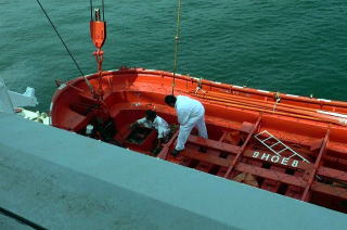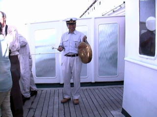 聞くところによると建造から46年の廃船寸前の船でしばらく使ってなかったため多くのトラブルがあるようで船内は白い作業服を着て工具箱を持った船員がいつもうろうろしてます。