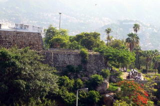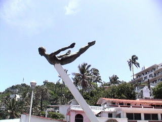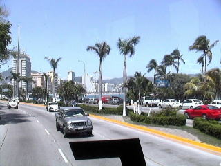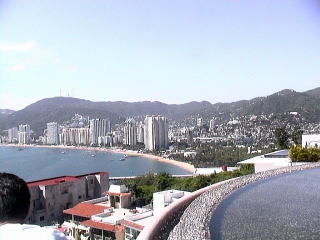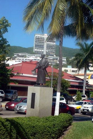 高台から見たアカプルコ 海岸線道路にある支倉常長像
