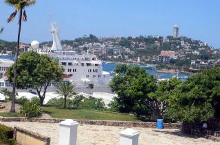 海岸と目の前にはサンディエゴ要塞が見えるアカプルコの港に珍しく予定時間に入港です。