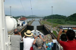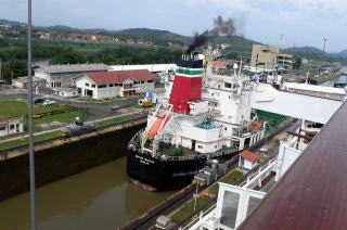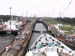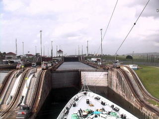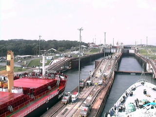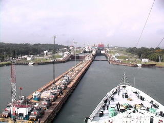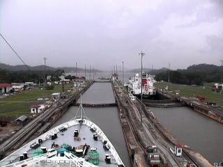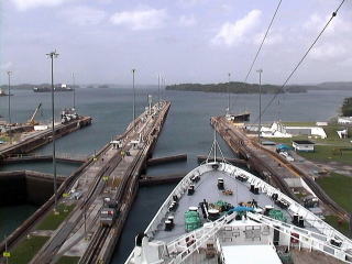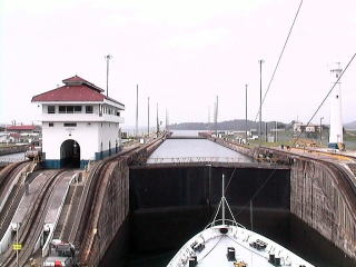 太平洋側に抜けるミラフローレス閘門 アメリカ橋