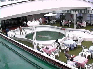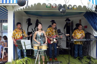 プールと言っても5かきぐらいしたら向こうに届くくらい短いプールが2つあるだけですがバンド演奏で盛大に行いました。