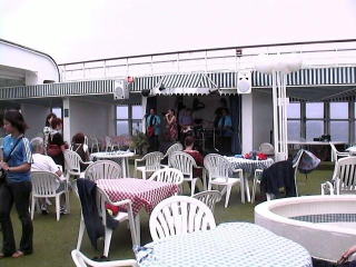 それまで海の上でいろいろな催し物に参加して時間をつぶしております。