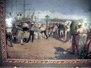 マーライオンまでは地下鉄で行きましたがそこからは徒歩でチャイナタウンを見物し、有名なオーチャード通りとも思いましたが昼食でおいしい餃子と生ビールを食したら疲れが出てバスの乗り方も判らないので暑かった市内をチャイナタウンで買った重いマンゴーを持って約一時間半ひたすら歩き帰船(。_+)