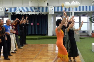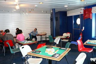 ラウンジデッキの八階にあり自主企画と言って特技を持った人たちが教えたり話したり、社交ダンスのレッスン場所にもなります。