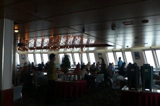 乗船から今までの船内生活は朝昼の食事はバイキング形式で夜食は二回に分け一回目は1730〜1800、二回目は1930分〜2000までに入場で食事します。