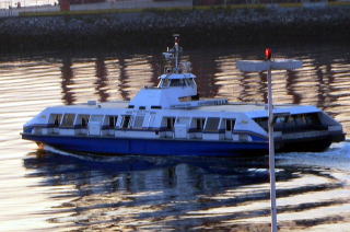 (右)港からすぐ近くのシーバス乗り場から出ているシーバスでこれで対岸に渡りキャピラノ吊り橋に行ける