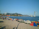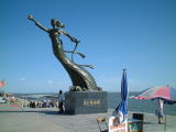 真夏の星海公園には海水浴客が集まっていた。海は茶色く濁り、決して綺麗なところではなかったが小学生たちが観光バスを連ねてやって来ているなどの賑わいぶりだ。この星海公園で子犬を散歩している女性がいて、我々の人気の的になっていたが、ガイドによると中国で犬を飼うのは金持ちだということで、なるほどそう言われれば、犬の姿はめったに見掛けないし、ましてや猫と遭遇することは皆無だった。ペットに対する規制がかなり厳しいのだろう。