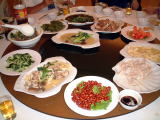 我々はその後再び大連市街に戻りレストラン「天天漁港」で夕食をとる。個室の部屋の中央テーブルには多くの海鮮料理が並べられ、女性店員が付いたが、彼女たちは食事の世話をすると同時に土産物を売るのも役目らしく、小石を並べて作られた枕や腕輪などをしきりに勧めていた。