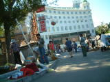 ホテルは松花江凱菜商務酒店(グロリアイン)(中央大街257号)(0451-4638855ファックス0451-4638533)で、松花江(スンガリ)側の高級ホテルであった。部屋割り、夕食のあと我々は側を流れる松花江に繰り出したがまっ暗で流れは見えない。ホテルを出たところで、我々の日本語を聞きつけて中年の日本人二人が話しかけてきた。千葉県に住んでいるという彼らは仕事でハルビンに来たということで「久しぶりに日本語で話せた」と言い川の側まで同行、暫く雑談のあと「良い旅を」と去って行った。我々はさらに行動半径を広げ、川に沿って並んでいた市場通りを散策。射的等のゲームや団子屋などがあり、人の集まりも多かったが通りの入口に両手両足の不自由な物乞いが座っているなど何となく馴染めず、早々にホテルへ引き返した。