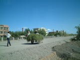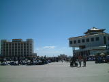 平原では気持ちの良い風が窓から入ったが、炭坑の街・ジャライノールに入ると再び悪臭が鼻を突き、石炭の臭いとは違うと思ったら、どうやらゴムタイヤをあちこちで燃やしている臭いではないかと推理した。ここらの炭坑は露天掘りということで、あちこちに明るい茶色のレンガ作りの家が密集しているところがあり、皆炭鉱労働者の住まいだという。我々は露天掘りの現場を見ようと現地の人に尋ねながら走り回り、ようやくそれらしき場所に着いたが、バスから下りるとそこは砂埃がひどく、丁度持参してきたマスクが役に立った。皆は露天掘りの淵まで坂を下りて向かったが、途中で現地の人が「何を物好きな」という顔で笑って我々を見つめていた。露天掘りは確かに巨大で遙か遠くにトロッコ列車が走っていたりして教科書的であったが、私たち夫婦は途中で同行をやめ皆が帰ってくるのを待った。砂塵は相変わらずで早々に車に戻り約50qの道のりをハイラル市街に戻る。