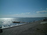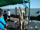 続いて我々が訪れたのは国境にある大きな湖「ダライ湖」であった。ダライとは大きなという意味だそうで、文字どおり海のような湖であったが、冬は全面凍結して車も走れるようになるとか。水は茶色に濁っているが、この夏は海水浴場として利用されていて、水際には海の家が並んで焼き魚などを観光客に売っていた。暫く水際などで遊んだが、ともかく暑いということでバスに避難し、またガタガタ道をドライブ、炭坑の街に向かった。