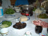 夕刻、ホテルの隣にあるパオ形式のレストランで羊肉のしゃぶしゃぶで夕食。内モンゴル自治区最後の夜だ。モンゴルの平原体験という最大の目的を達成した充実感もあったのだろうか、食は進み、話も盛り上がった晩餐であった。