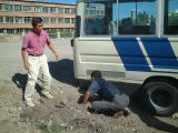 途中の街でガイドの「白」さんが「私の奥さんの両親がここに住んでいる」と紹介、「おとうさんと良くお酒を飲むが、おとうさんは私が嫌いで時々取っ組み合いの喧嘩をするね。私は弱いからいつも逃げ帰るね」と笑わせる。この白ガイドはなかなかのキャラクターで、同行者の若い女性を高校生と信じ込んだり、自称警察上がりのガイドを「ズルガイド」と言ったり、「皆さんが喜んでくれないと私はクビになる」「明日皆さんと別れる時は私は洪水になる」などの名言を吐き我々を楽しましてくれた。彼は1975年生まれ、男ばかりの3人兄弟で兄は英語の通訳で国際会議などで活躍、弟は父親の後を継いで放牧民だそうだ。因みに奥さんは精神科医師で自分よりも高給取りだと嘆いていた。