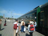 約三時間の乗車予定の列車も軟座シートで居心地がよく、来たときと同様、延々と続く平原の中を我々の旅は続く。トランクなどの荷物はバスが直接ハイラルのホテルに届けるということで、手荷物は少なくて澄んだし、乗客も少な目だったため、ハルビンの夜の乗車の時のような混雑もなく、部屋でもノンビリとした会話を交わせた。