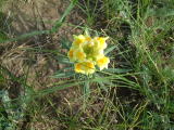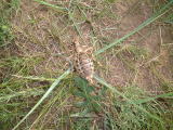 ると草むらにバッタが動き回る。バッタはビービーという羽音をたてながら飛び回り、遠くから近づいてくるのがよく分かる。虫嫌いの妻は音が聞こえる度にパオの中に逃げ込み、また顔を覗かせる。同行者に聞くと朝4時過ぎに朝日が登ったという。地平線には雲がかかり、地平線から顔を見せることは不可能と思った私は丁度その頃眠りについていたのだったが、雲の上からの日之出も美しかったとか。写真を撮るチャンスを逃したのは少し残念であった。この日も天気は良く、朝食後我々は草原で花を探したりして散策しが、雨の量が少ないとあって花も所々に咲いているだけ。草原が花に覆われるのは7月ということで、8月の今はむしろむき出しの地面が目立った。昨夜の話だと早朝に20頭程の羊を殺すということだったが、別に観光客用に殺すわけではないので、朝食の時にはすでにその処理は終わっていたようだ。なかにはガッカリした人もいたようだったが、目に焼き付くような場面に遭遇しなくて良かったとも言える。