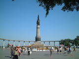 三日目(8月13日(月))。早い人は朝食前に松花江に出かけたようだったが、我々は朝食後に出かけ、朝市を覗いた。しかし、すでに朝市は後片づけに入っており、店の人達が箒でゴミを掃くなどし、一方でまだ客を招いている店には警察官が早く店を閉めるように促すなど慌ただしい雰囲気であった。手荷物などを整え、ロビーに集合した我々はガイドさんと伴にに再び松花江に向かい、スターリン公園の銅像の説明を受けた後、川沿いを進んだ。途中に朝の散歩の途中なのか、人々がのんびりと雑談しており、観光客目当ての土産売りもちらほら。突然我々の前に一台の台車に子供を三人乗せた母親が登場した。三つ子だそうでくりくり坊主の三人は如何にも愛らしかったが、一人っ子政策をとる中国では双子、三つ子の養育は大変だという。同行者は思わず写真を取りだしたが、写真を取るなら金をくれとばかりに別の女性が脇から出てきて集金を始める。一人1元(日本円で15円程度)が徴収されシャッターが切られたが、中には同情して5元(75円)を手渡す人もいて、三つ子商売も結構な上がりを見せていた。