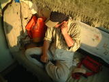 用意した持ち物は、・衣類(寒さに備えてのコート、着替え用のTシャツ4枚、ズボン1本、日数分の下着類、靴下4枚など)・水筒・レインコート・ローソク・懐中電灯・ナイフ・デジカメ一式・ティッシュ・ウエットティッシュ・トイレットペーパー・飴・梅干し等で、物資の多くはなるべく現地で処分できるよう100円ショップで調達した。