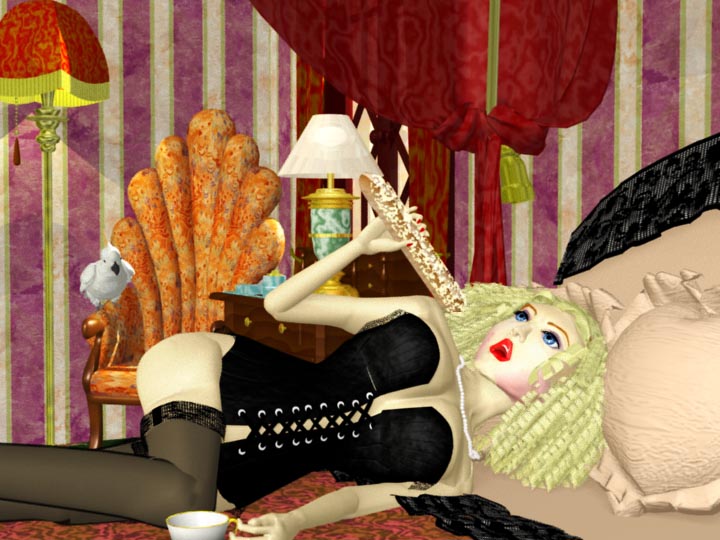 Lulu Smoking これはメガネ型モデリングをしたり、眉もモデリングしたりと今までとは違った作り方をしています。 乳が結構うまくできたと思うんだけど・・・。 |