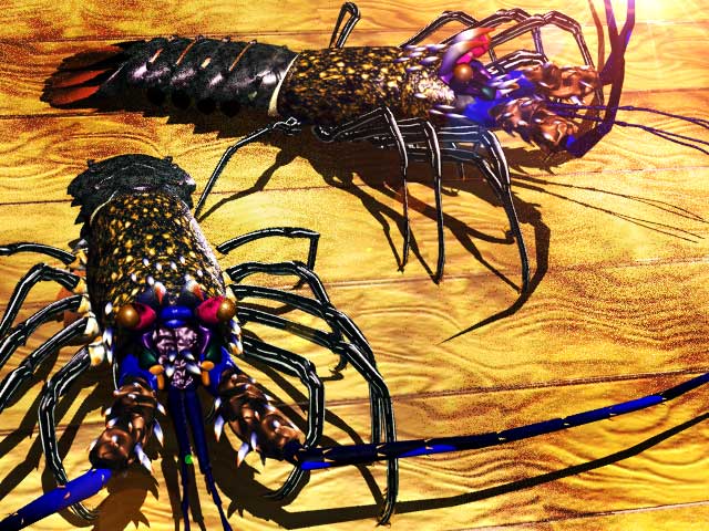 奄美のイセエビ スーパーでイセエビ(\880)を見て、作りたくなって作りました。 田中一村の絵をもとにテクスチャを作りましたので、これは奄美のイセエビなんだと思います。 モデリングが終わる前に資料として買ったエビを食べてしまったのは、やはり失敗でした。momo展出展作品。 |
