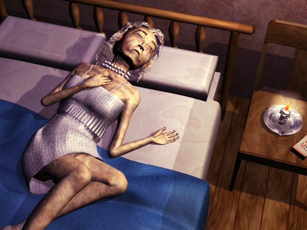 50年後のルル 若いときの服を着て、華やかなりし昔をしのぶルル。 昔のルルは、Gallery1で見てね。こっちを先に見てへこんじゃった人、ごめんね。 この作品はMdN「ゼロから作るテクスチャデザイン2」と首っ引きで作りました。 |