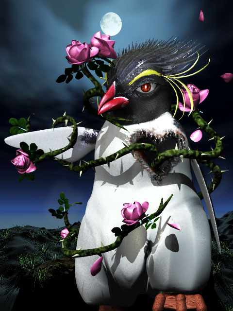 Federico(キャラクターイメージ) 動画作品のキャラクター。怪しげなジプシーの持つタロットカードのイメージで。 フェデリコはイワトビペンギンの幽霊です。 Shade。背景はVue d'Espritで作成。 でも動かすのは多分MAX。 |