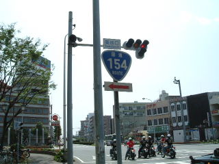 どうやら国道1号と名古屋港を結ぶ国道らしい。名古屋港側から歩き始め、地下鉄1駅分を歩ききったところで国道154号は右折する。右折した直後に標識を発見。後ろを向いていましたが、何とか見逃さずに済みました。