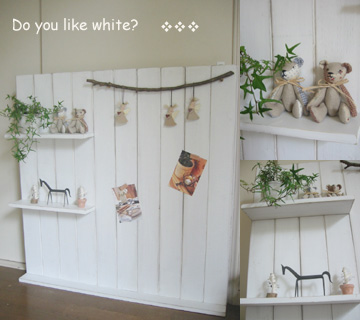 アンティークステインで汚した上に、ホワイトのペンキで2度塗り、