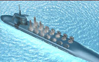 潜水艦。海が透明体のため、レンダリング頻度それほど高くないのにやたらと時間がかかった代物。 |