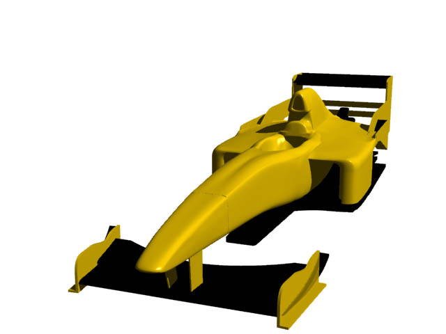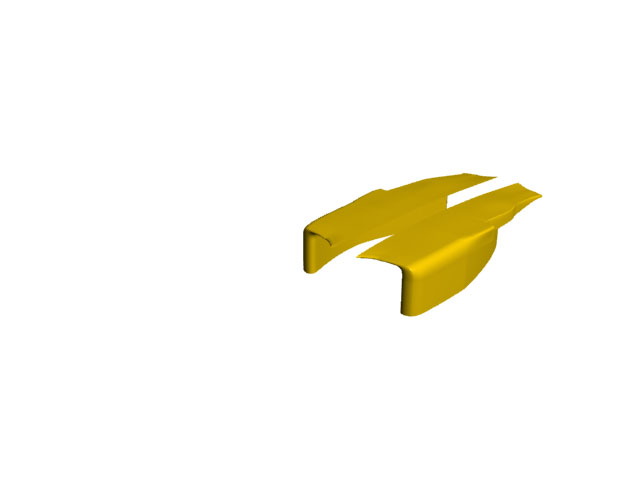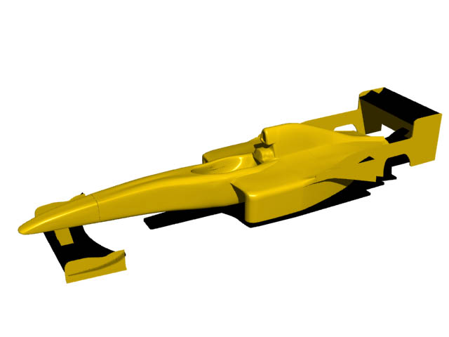 サイドポンツーン。片方作って鏡面コピー。実はこれは上下に分かれる。(下図参照)わかれさせた理由はモデリングのしやすさの為もあるが、ジョーダンはサイドの模様がポンツーン上部に回ってきている為、ラップマッピングの設定が細かくない(大雑把)なSHADEでは分けた方が良いと考えた為。(もちろんテクスチャも分ける)