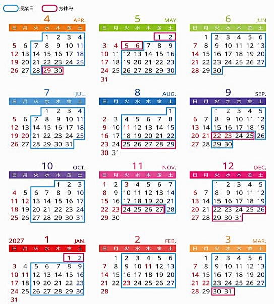 月々の曜日によって休講日がありますのでご確認ください