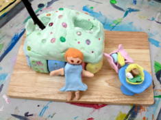 子どもは身近にある様々なものを使って作品をつくるのがとても好きです。 木の枝、どんぐり、布切れや割り箸、おかしのパッケージなど、限りがありません。 そのような素材と紙粘土やいろいろな材料を組み合わせたりして、自由な発想でのびのびと表現できるようにしています。 その子のとても可愛い世界がみえてきます。