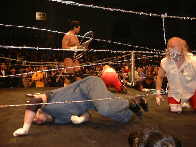 天龍も大仁田も椅子や有刺鉄線で大暴れです。前3列目だったので、迫力充分でした。何度か危ない思いをしましたが、、、、。