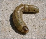 ついでに、土中にいると言えば・・・ネキリムシもやっかいです 成育中の苗が地際で折れたようになっていたらヤツの仕業です 被害に遭うまで気が付きません(^^ゞ その近辺を浅く掻いてみると発見でします!もち捕殺!!! これはカブラヤガなどの蛾の幼虫(総称)ですよ〜 |