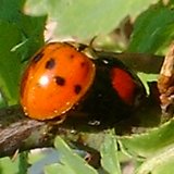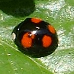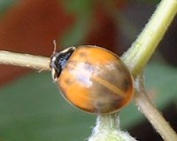 一般的に見られるテントウムシの中では小型のテントウムシです 他のテントウムシに比べ、動きがとても素早いのが特長です エサの少ない場所でも行動範囲を広げてながら上手く暮らしていける 種類のテントウムシです 背中の模様も他の星タイプのものとは違いちょっと複雑・・・ |