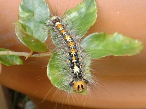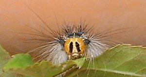 |   この顔を見てください♪ なんとも情けない顔・・・ 漫画チックですよね 彼はマイマイガの幼虫です | |