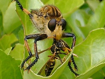 複眼はハエやアブ特有のギャングのようです ハエ目ムシヒキアブ科のシオヤアブ・・・ ![]() |