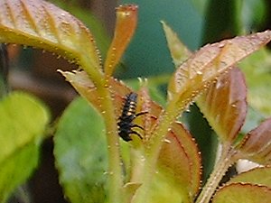 ![]() 今年もちゃんと現れてくれたんです♪ 本当に小さな幼虫ですが なかなか素早く動くのですよ アブラムシをよく食べてくれます |